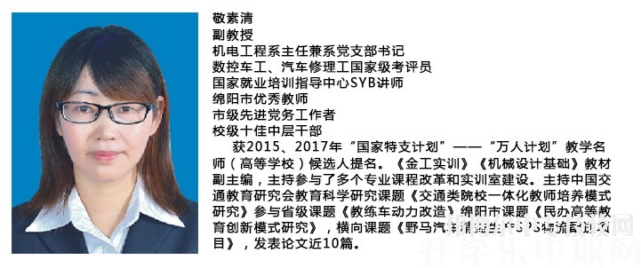 學(xué)院依托科技城和“綿安北”汽車及零部件基地的人力資源聚集優(yōu)勢,建立了兼職教師資源庫,通過外引內(nèi)聘,專兼結(jié)合,多元激勵的措施抓好“一主”(“雙師型”教師團(tuán)隊),“三高”(“高學(xué)歷,高職稱,高技能”師資隊伍)建設(shè),培養(yǎng)了一支“師德高尚,結(jié)構(gòu)合理,專業(yè)配套,數(shù)量適當(dāng),專兼結(jié)合,充滿活力,相對穩(wěn)定”符合高等職業(yè)教育發(fā)展規(guī)律的優(yōu)秀教師團(tuán)隊。