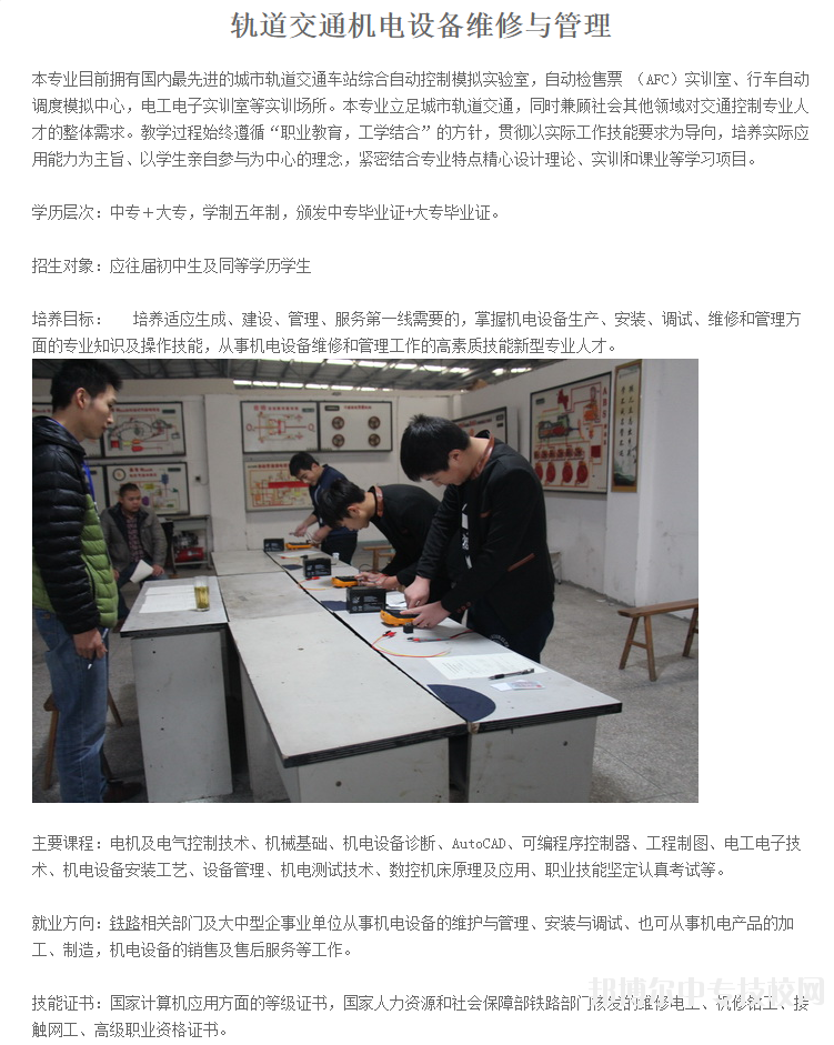 成都新運(yùn)職業(yè)學(xué)校軌道交通機(jī)電設(shè)備維修與管理專業(yè)介紹