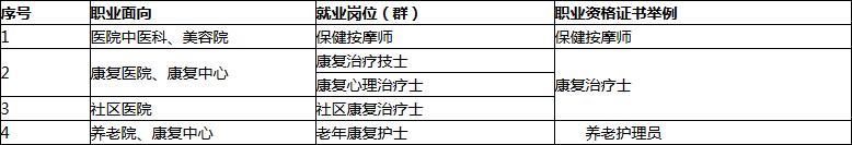 (三)專業(yè)方向課程包括:疾病康復(fù)、康復(fù)評定技術(shù)、實(shí)用康復(fù)治療技術(shù)、實(shí)用康復(fù)護(hù)理技術(shù)、中醫(yī)傳統(tǒng)康復(fù)技術(shù)、老年護(hù)理、社區(qū)康復(fù)。